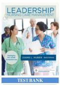 Complete test bank for Leadership and Nursing Care Management, 6th Edition by Diane L. Huber. Includes all multiple-choice and multiple-response questions from Chapters 1–14, covering key topics such as leadership principles, change management, organizational culture, decision making, time and stress management, legal/ethical issues, communication, team building, delegation, power/conflict, workplace diversity, organizational structure, shared governance, and strategic management. Fully answer...