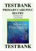 Excel in your psychiatric-mental health courses with the Complete Test Bank for Primary Care Psychiatry, 2nd Edition by McCarron, Xiong, et al.. This essential study resource provides a massive collection of exam-style questions designed to help you master collaborative care models and the management of behavioral health in primary care settings. What is Included: • Comprehensive Chapter Coverage: Rigorous practice questions for all 26 chapters, starting from The Primary Care Psychiatric Int...