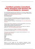 Certified Lactation Consultant Exam Questions And Answers All Correct!Rated A+ Answers