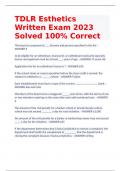 TDLR Esthetics Written Exam 2023 Solved 100% Correct