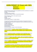 AORN PERIOP 101 FINAL EXAM (2022) COMPLETE TOP SOLUTION RATED A All the following professionals are qualified to provide anesthesia to a patient EXCEPT: a) anesthesiologist b) CRNA c) anesthesiology assistant d) operating surgeon - CORRECT ANSWER d) operating surgeon Of the following, which is not used to secure airway: a) ET tube b) LMA c) nasal cannula d) oral airway - CORRECT ANSWER c) nasal cannula The perioperative team should know the location of equipment stored in the OR and in the depar...