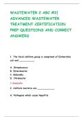 WASTEWATER 2 ABC #1 | ADVANCED WASTEWATER TREATMENT CERTIFICATION PREP QUESTIONS AND CORRECT ANSWERS