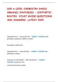 OCR A LEVEL CHEMISTRY (H432) ORGANIC SYNTHESIS - SYNTHETIC ROUTES STUDT GUIDE QUESTIONS AND ANSWERS LATEST 2025