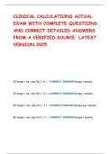 CLINICAL CALCULATIONS ACTUAL EXAM WITH COMPLETE QUESTIONS AND CORRECT DETAILED ANSWERS FROM A VERIFIED SOURCE LATEST VERSION 2025