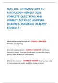 PSYC 101: INTRODUCTION TO PSYCHOLOGY NEWEST 2025 COMPLETE QUESTIONS AND CORRECT DETAILED ANSWERS (VERIFIED ANSWERS) |ALREADY GRADED A+