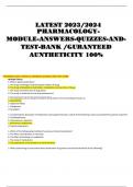 LATEST 2023/2024 PHARMACOLOGY- MODULE-ANSWERS-QUIZZES-AND- TEST-BANK /GURANTEED AUNTHETICITY 100%