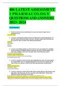 406 LATEST ASSESSMENT 1 PHA RMACOLO GY QUESTIONS AND ANSWERS 2023- 2024