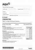 AQA A LEVEL CHEMISTRY QUESTION PAPER 1 2024 [7405:1 Inorganic and Physical Chemistry]
