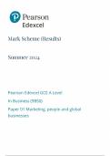 2024 PEARSON Edexcel A LEVEL GCE Business Advanced Mark Scheme Paper 1:Marketing, people and global businesses(9BS0/01)