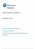PEARSON Edexcel A LEVEL GCE Business Advanced Mark Scheme Paper 2 2024:Business activities, decisions and strategy(9BS0/02)