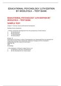 EDUCATIONAL PSYCHOLOGY 11TH EDITION BY WOOLFOLK – TEST BANK
