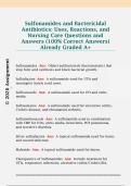 Sulfonamides and Bactericidal Antibiotics: Uses, Reactions, and Nursing Care Questions and Answers (100% Correct Answers) Already Graded A+