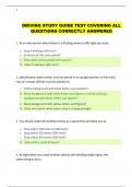 DRIVING STUDY GUIDE TEST COVERING ALL QUESTIONS CORRECTLY ANSWERED