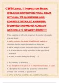 CWB Level 1 Inspector Basic welding inspection final exam with all 70 questions and correct detailed answers (verified answers) already graded a+| newest 2025!!!!