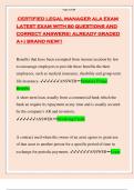CERTIFIED LEGAL MANAGER ALA EXAM LATEST EXAM WITH 80 QUESTIONS AND CORRECT ANSWERS| ALREADY GRADED A+| BRAND NEW!!