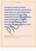NJ HEALTH AND ACCIDNT INSURANCE ACTUAL EXAM 2024- 2025 WITH ALL 250 QUESTIONS AND CORRECT DETAILED ANSWERS (VERIFIED ANSWERS)/ NEW JERSEY HEALTH AND ACCIDENT EXAM| ALREADY GRADED A+|BRAND NEW!!|JUST RELEASED! Health