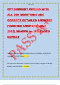 CPT SURGERY CODING WITH ALL 200 QUESTIONS AND CORRECT DETAILED ANSWERS (VERIFIED ANSWERS) 2024- 2025| GRADED A+| RELEASED NEWEST