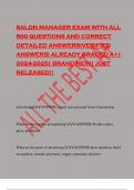 SALON MANAGER EXAM WITH ALL 500 QUESTIONS AND CORRECT DETAILED ANSWERS(VERIFIED ANSWERS) ALREADY GRADED A+| 2024-2025| BRAND NEW| JUST RELEASED!!