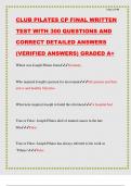 CLUB PILATES CP FINAL WRITTEN TEST WITH 300 QUESTIONS AND CORRECT DETAILED ANSWERS (VERIFIED ANSWERS) GRADED A+
