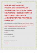 HESI A2 ANATOMY AND PHYSIOLOGY EXAM AUGUST 1, 2024 PREDICTOR ACTUAL EXAM NEWEST 2024-2025| QUESTIONS AND CORRECT DETAILED ANSWERS(VERIFIED ANSWERS)| GRADED A+