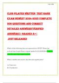 CLUB PILATES WRITTEN TEST BANK EXAM NEWEST 2024-2025 COMPLETE 500 QUESTIONS AND CORRECT DETAILED ANSWERS(VERIFIED ANSWERS)| GRADED A+| JUST RELEASED Which
