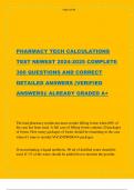 PHARMACY TECH CALCULATIONS TEST NEWEST 2024-2025 COMPLETE 300 QUESTIONS AND CORRECT DETAILED ANSWERS (VERIFIED ANSWERS)| ALREADY GRADED A+