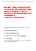 BIO 191 FINAL EXAM NEWEST ACTUAL EXAM COMPLETE 400 QUESTIONS AND CORRECT DETAILED ANSWERS (VERIFIED ANSWERS)| ALREADY GRADED A+.