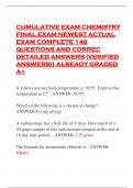 CUMULATIVE EXAM CHEMISTRY FINAL EXAM NEWEST ACTUAL EXAM COMPLETE 140 QUESTIONS AND CORREC DETAILED ANSWERS (VERIFIED ANSWERS)| ALREADY GRADED A+ A kitten's normal body temperature is 102ºF. Express this temperature in Cº. - ANSWER-38.9ºC Which of the f