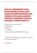 Health assessment dinal exam newest actual exam complete 250 questions and correct detailed answers (verified answers)| already graded a+|brand new!!!!!