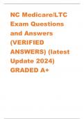 NC Medicare/LTC Exam Questions and Answers (VERIFIED ANSWERS) (latest Update 2024) GRADED A+