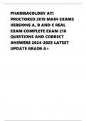 PHARMACOLOGY ATI PROCTORED 2019 MAIN EXAMS VERSIONS A, B AND C REAL EXAM COMPLETE EXAM 210 QUESTIONS AND CORRECT ANSWERS 2024-2025 LATEST UPDATE GRADE A+