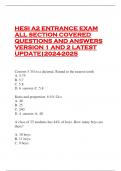 HESI A2 ENTRANCE EXAM ALL SECTION COVERED QUESTIONS AND ANSWERS VERSION 1 AND 2 LATEST UPDATE|2024-2025 Convert 5 3/4 to a decimal. Round to the nearest tenth A. 5.75 B. 5.7 C. 5.8 D. 6 -answer-C. 5.8 Ratio and proportion. 6:10::24:x A. 40 B. 25 C. 240 D.