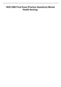 NUR 2488 Final Exam (Practice Questions) Mental Health Nursing
