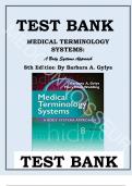 TEST BANK for Medical Terminology Systems: A Body Systems Approach 8th Edition by Barbara Gylys & Mary Ellen Wedding 9780803658677 Chapters 1-15 Complete Guide. Chapters Covered Include: Chapter 1. Basic Elements of a Medical Word Chapter 2. Suffixes Chapter 3. Prefixes Chapter 4. Body Structure Chapter 5. Integumentary System Chapter 6. Digestive System Chapter 7. Respiratory System Chapter 8. Cardiovascular System Chapter 9. Blood, Lymphatic, and Immune Systems Chapter 10. Musculoskeletal Syst...