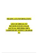 PHARM ATI INFORMATION: LIST OF DRUGS TO REVIEW/STUDY EXAM (ACTUAL 2025/2026) 100% VERIFIED BY EPERT| GRADED A+