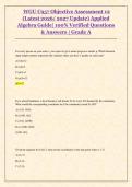 This document prepares students for the WGU C957 Applied Algebra Objective Assessment by covering all core algebra concepts required for the exam, including equations, inequalities, functions, and problem-solving techniques. It is designed as a concise yet comprehensive study guide aligned with WGU’s assessment objectives and competency-based exam structure.