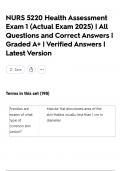 NURS 5220 Health Assessment Exam 1 (Actual Exam 2025) | All Questions and Correct Answers | Graded A+ | Verified Answers | Latest Version
