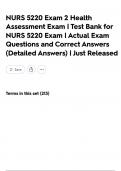 NURS 5220 Exam 2 Health Assessment Exam | Test Bank for NURS 5220 Exam | Actual Exam Questions and Correct Answers (Detailed Answers) | Just Released