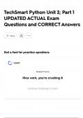TechSmart Python Unit 2; Part 1 UPDATED ACTUAL Exam Questions and CORRECT Answers