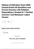 Tableau Certification Exam 2025 (Actual Exam)| All Questions and Correct Answers with Detailed Explanations | Graded A+ | Verified Answers | Just Released | Latest Version