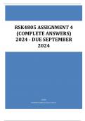 RSK4805 Assignment 4 (COMPLETE ANSWERS) 2024 - DUE September 2024 ALL CORRECTLY ANSWERED LATEST UPDATES | GRADED A+ (UNISA ASSIGNMENT| ASSESSMENT)