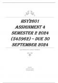 HSY2601 ASSIGNMENT 4 SEMESTER 2 2024 (545962) – DUE 30 SEPTEMBER 2024 ALL CORRECTLY ANSWERED LATEST UPDATES | GRADED A+ (UNISA ASSIGNMENT| ASSESSMENT)