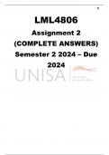 LML4806 Assignment 2 (COMPLETE ANSWERS) Semester 2 2024 – Due 2024 ALL CORRECTLY ANSWERED LATEST UPDATES | GRADED A+ (UNISA ASSIGNMENT| ASSESSMENT)