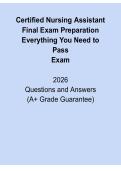 Get fully prepared for the Certified Nursing Assistant (CNA) 2026 Final Exam with this all-in-one exam preparation PDF covering everything you need to pass with confidence. This resource provides focused review of essential CNA skills, patient care principles, safety guidelines, and exam-relevant concepts to support efficient and effective studying. Ideal for CNA students approaching their final exam, this guide helps reinforce knowledge, reduce exam anxiety, and maximize your chances of success...