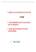 CHAMBERLAIN COLLEGE OF NURSING(HESI A2 2023) MATH -LATEST UPDATE FOR REAL EXAM