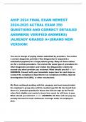 AHIP 2024 FINAL EXAM NEWEST 2024-2025 ACTUAL EXAM 350 QUESTIONS AND CORRECT DETAILED ANSWERS( VERIFIED ANSWERS) |ALREADY GRADED A+||BRAND NEW VERSION!
