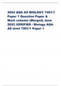 2024 AQA AS BIOLOGY 7401/1 Paper 1 Question Paper & Mark scheme (Merged) June 2023 VERIFIED / Biology AQA AS level 7401/1 Paper 1