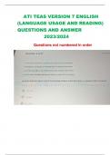 ATI TEAS VERSION 7 ENGLISH (LANGUAGE USAGE AND READING) QUESTIONS AND ANSWER
