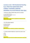 Louisiana (LA) 7-803 Residential Roofing Exam PRACTICE QUESTIONS WITH CORRECT ANSWERS (VERIFIED ANSWERS) PLUS RATIONALES 2026 Q&A