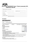 AQA A-LEVEL GEOGRAPHY Paper 1 Physical geography 2025 VERIFIED QP AND MS
